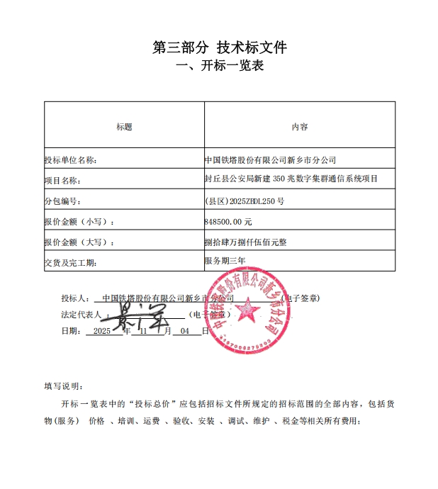 | 1、采购内容:采购350M数字集群通信系统固定基站1处服务、移动基站1套服务,及拆除安装调试3处现有基站服务;(详见第五章采购需求及具体要求); 2、质量要求:合格; 3、合同履行期限:服务期三年 | |||||||||||||||||||||||||||||||
