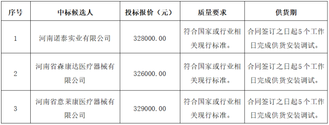 ******委员会推荐的中标候选人(排序不分先后)